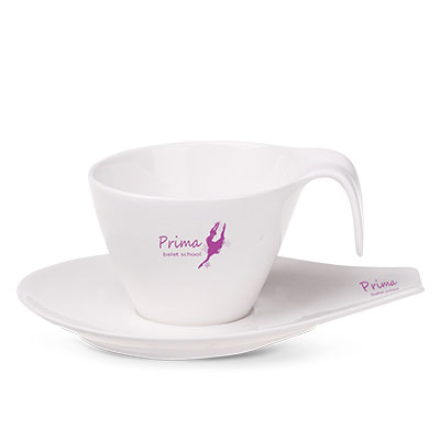 Tasse mit Untertasse aus Porzellan Royal White, Durchmesser d. Untertasse 177 mm