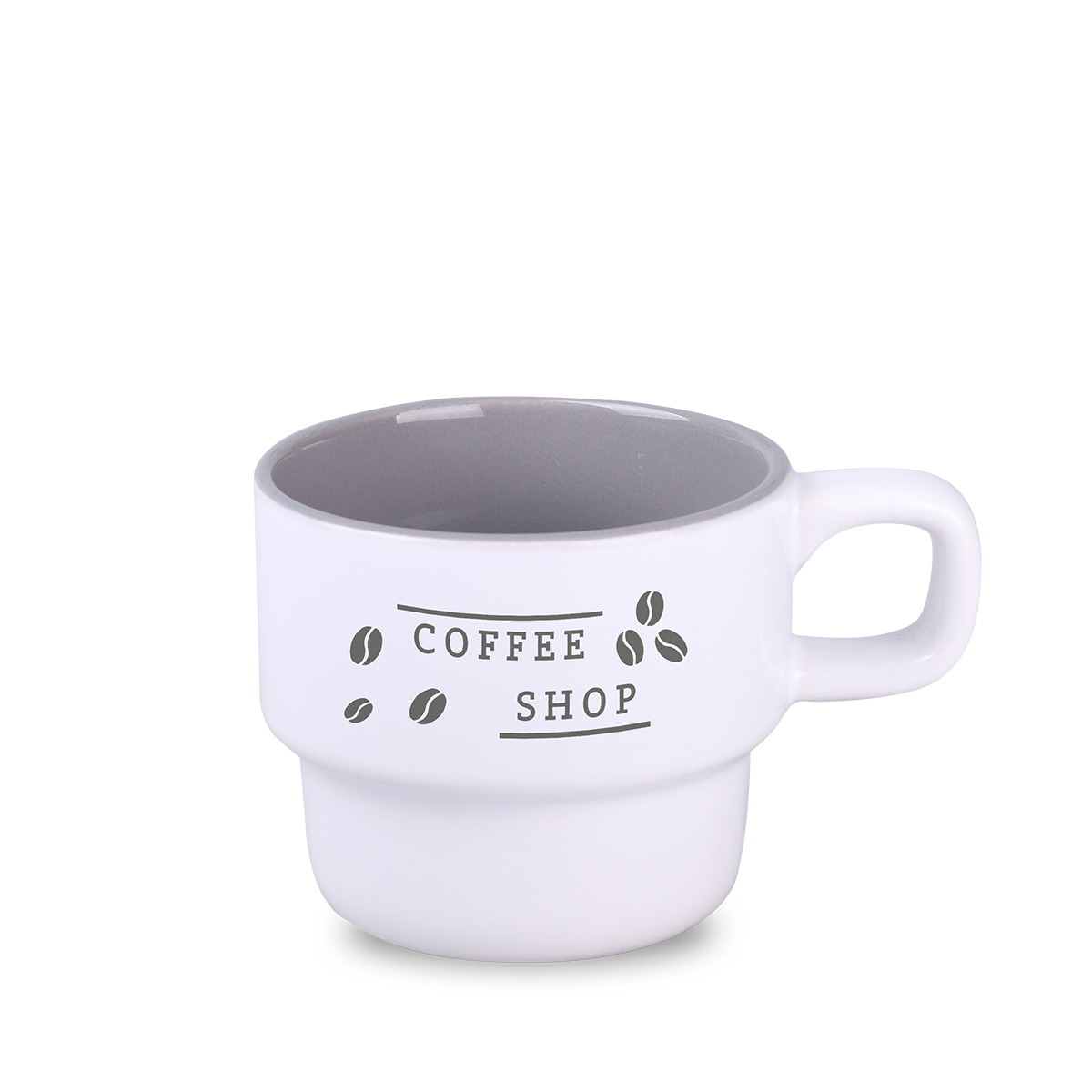 Ein interessanter stapelbarer Becher im skandinavischen Stil. Erhältlich in mehreren trendigen Varianten mit farbigem Innenraum. Er zeichnet sich durch seine charakteristische Griffgestaltung aus.