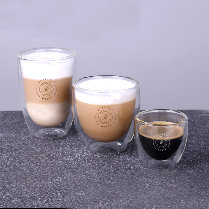 Außergewöhnliches doppelwandiges Glas. Das beliebte Glasmodell in zwei weiteren, neuen Größen. Das doppelwandige Glas läßt das Getränk aus dem Innern wirken und setzt die darauf platzierte Dekoration perfekt in Szene.