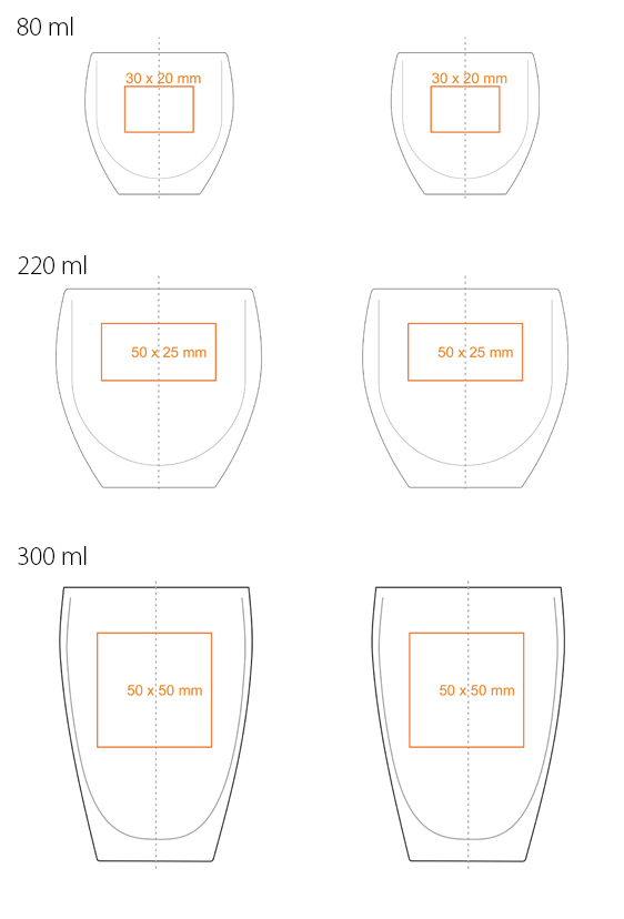 Zur Verfügung stehende Drucktechniken für VIRGO: *  (80 / 220 / 300 ml)
