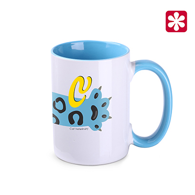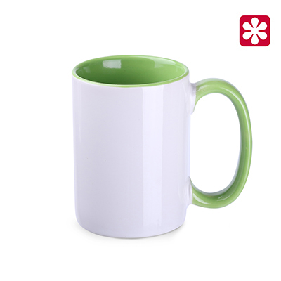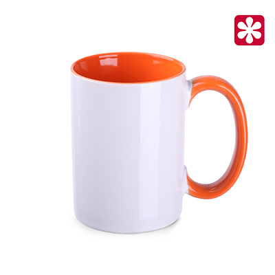 Ein moderner Becher mit geraden Wänden und vier verschiedenen Innenfarben. Er bietet eine breite Palette von Möglichkeiten zur Markenwerbung. Dieses Produkt ist ein Auslaufmodell und kann Nadelstiche, Punkte sowie Unterschiede im Farbton der Glasur aufweisen.