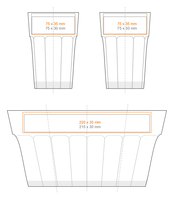 Zur Verfügung stehende Drucktechniken für MAX SUPRA: * (350 ml)
